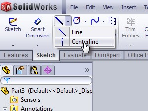 ![]() Odprite SolidWorks. Izberite zavihek Sketch. Izberite orodje Centerline (risanje črte). |