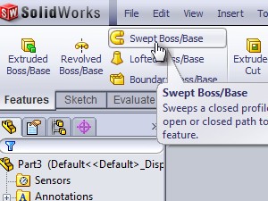 ![]() Izberite orodje Swept Boss/Base, ki ga najdete v zavihku Features. |