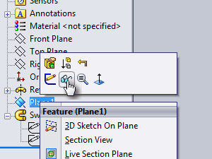 ![]() V zavihku Features poiščite Reference Geometry in kliknite Plane. |