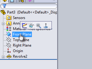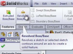 ![]() Izberite zavihek Features. Izberite orodje Revolved Boss/Base (izdelava krožnega telesa). |
