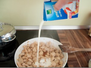 Dodajte narezano meso in počakajte da postane belkaste barve.