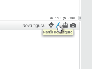 Najprej izbrišite mačka in kliknite na čopič. (risanje nove figure)