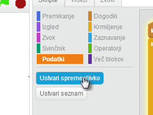 ![]() Potem primite novo spremenljivko (najdete jo med spremenljivkami) in jo vstavite v set pen color to () |