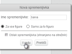 ![]() Spremenljivko poimenujte in kliknite Vredu. |