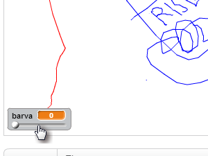 ![]() Z spreminjanjem vrednosti spremenljivke barva boste spremenili barvo svinčnika. Podobno lahko naredite tudi za debelino svinčnika. |
