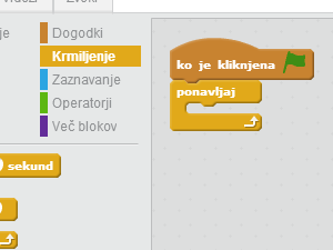 ![]() Pod ko je kliknjena zastavica vstavite ponavljaj zanko, ki jo najdete med krmiljenjem. |