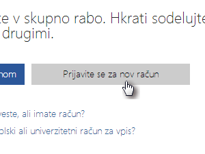 ![]() Odpre se prijavno okno. Kliknite Prijavite se za nov račun. |