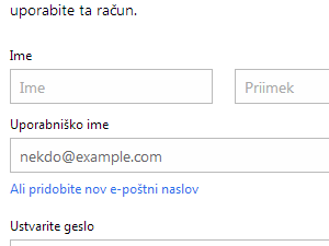 ![]() Izpolnite podatke in potrdite račun. S tem boste prejeli tudi dostop do One Drive, kjer lahko shranjujete podatke. |