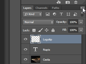 ![]() Sedaj v paleti layerjev kliknite na ikono za več možnosti (glej sliko) ... |