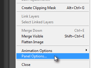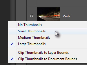 ![]() Pokazal vam bom še drugi, malo hitrejši način za spreminjanjte velikosti sličic poleg layerjev. Z desnim miškinim gumbom kliknite na prazno polje v paleti layerjev (glej sliko) ... |