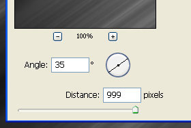 Odpre se novo okno. Angle določite 35 stopinj in Dsitance 999 pixels. Angle nastavitev lahko tudi poljubno določate. Kliknite na gumb OK. |
