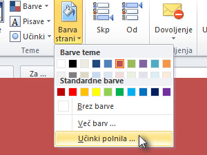 ![]() Ponovno kliknite na ikono Barva strani in tokrat izberite Učinki polnila ... |