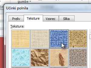![]() V tem oknu kliknite na Teksture in označite katerikoli vzorec. Kliknite na gumb V redu. |
