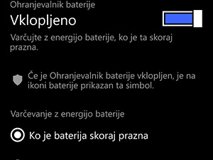 ![]() Na isti strani lahko ohranjevalnik baterije vklopite in spodaj tudi nastavite tri različne možnosti. Jaz sem tukaj pustil kar privzete nastavitve.