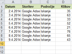 Moj zvezek v Excelu vsebuje statistiko z nekaj številkami.