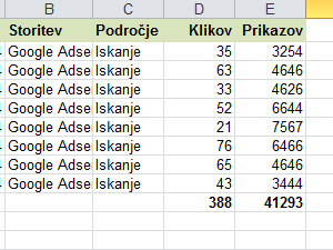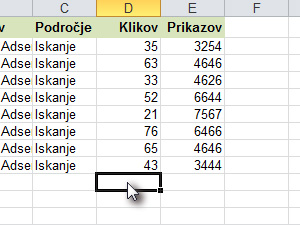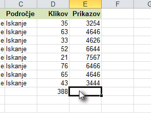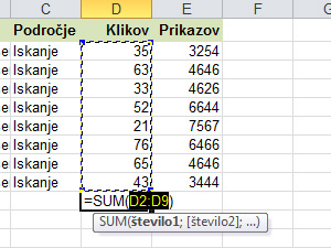 ![]() Te številke bom na hitro seštel. To storim tako, da kliknem v celico spodaj po številkami ... |