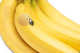 ![]() Povlecite z miško od spodnjega levega dela pa do zgornjega desnega dela sadja (glej sliko). |