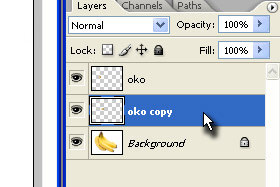 ![]() Kliknite z miško dvakrat na ime layerja in ga preimenujte v oko (glej sliko). |