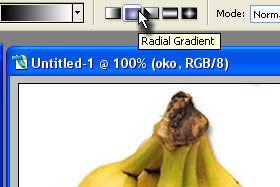 ![]() Zgoraj v orodni vrstici označite Radial Gradient. |