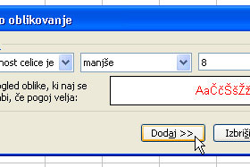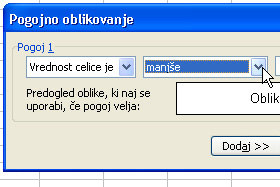 V polju Pogoj 1 izberite Vrednost celice je in nato manjše (glej sliko)... |