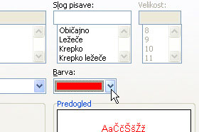 V polju barva preko izbrinika določite rdečo barvo in kliknite na gumb V redu. |