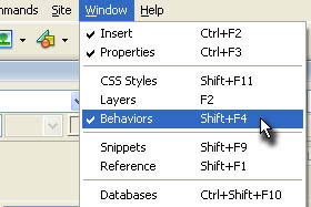Kliknite na Window in izberite Behaviours.