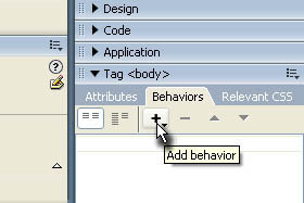 Na desni strani se prikaže polje Behaviors (glej sliko).