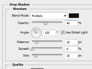![]() Kliknite zgoraj na Layer, Layer Style in izberite Drop Shadow... V novem oknu nastavite podobne vrednosti kot jaz in kliknite na gumb OK. |