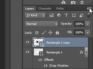 ![]() Označite sedaj zgornji, duplicirani layer in kliknite na ikono za več možnosti (glej sliko) in izberite Blending Options... |