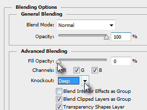 ![]() V novem oknu Knockout nastavite Deep in Fill Opacity 0 %. Kliknite na gumb OK. |