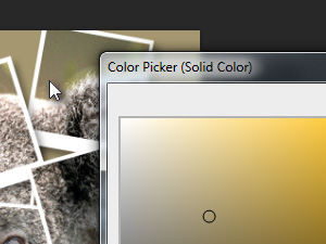 ![]() V novem oknu, kjer določamo barvo, kliknite z miško nekje na fotografijo, kjer boste tako določili barvo. Kliknite na gumb OK. S tem smo uporabili barvo za ozadje iz fotografije. |
