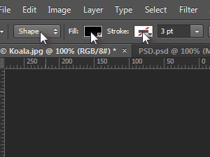 ![]() Zgoraj nastavite Shape (glej sliko), Fill naj bo črna barva in Stroke naj bo transparenten. |