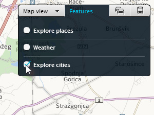 ![]() Pomaknite se sedaj z miško nad Features in izberite Explore cities. |