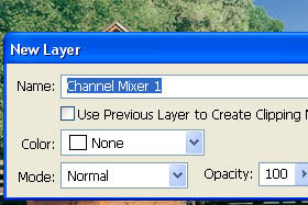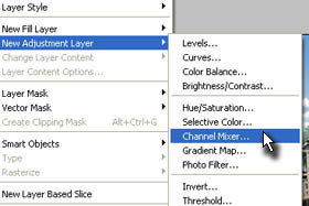 Kliknite zgoraj na Layer, New Adjustment Layer in izberite Channel Mixer...