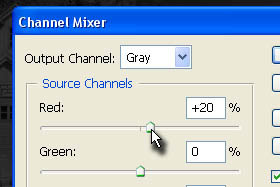 Premikajte drsnik Red (rdeča) levo in desno. Večji kot bo procent, večja bo osvetlitev rdečih oddtenkov, ki se nahajajo na prvotni fotografiji. Jaz sem Red nastavil na 20%. Ne zaprite še okna... |