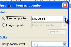 V polju Mesto označite Sprotne opombe in preko izbrinika določite Dno stari. |