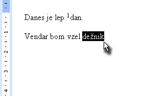 Označite še drugo besedo v besedilu, ki ste ga prej ustvarili.