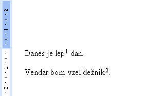 Če pogledatmo še besedilo na vrhu strani, bomo opazili številke, ki predstavljajo opombe.