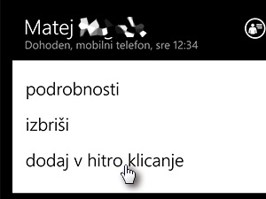 ![]() ... prikažejo možnosti, kjer izberete dodaj v hitro klicanje. |