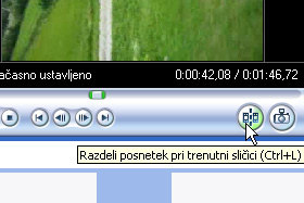 Kliknite na gumb Razdeli posnetek pri trenutni sličici (glej sliko).