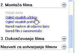 Potem pa v polju Montaža filma kliknite na Ogled vizualnih učinkov.