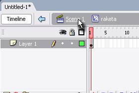 V oknu Timeline kliknite na Scene 1 (glej sliko).