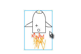 Na desni strani, v polju Library označite in držite objekt raketa... Če polja Library ne vidite, kliknite zgoraj na Window in izberite Library. |
