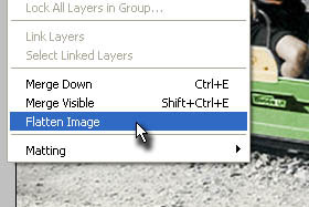 ![]() Kliknite zgoraj na Layer in izberite Flatten Image. |