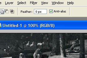 ![]() Zgoraj v orodni vrstici naj bo Feather nastavljen na 0 px in Anti-alias označen. |