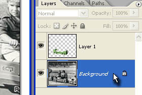 ![]() V paleti layerjev označite Background layer oziroma prvotno fotografijo. |
