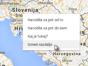 ![]() Potem kliknite z desnim miškinim gumbom na točko, od kot želite točno meriti razdaljo ter izberite Izmeri razdaljo. |