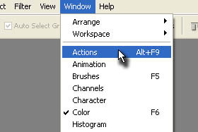 Kliknite zgoraj na Window in izberite Actions.