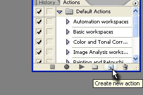 Kliknite na ikono Create new action (glej sliko). |