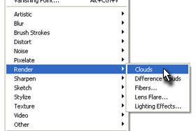 Potem pa kliknite zgoraj na Filter, Render in izberite Clouds. |